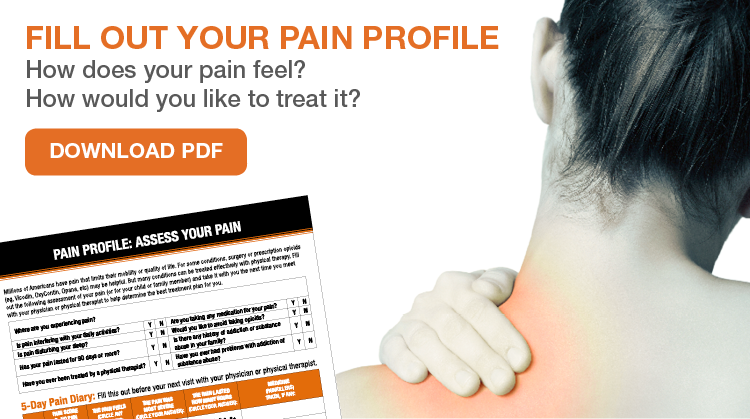 Thankfully, a much better communication tool exists! This downloadable .pdf provides a way for you to describe the type of pain, duration, and other factors that might be affecting your pain. Use this Pain Profile the next time you need to understand or describe your pain to a physical therapist or other medical professional!